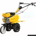 В комплектации идут фрезы и пневматические колеса 5.00-12, благодаря которым легко преодолевается бездорожье. Мотоблок работает на бензине, а запускается при помощи ручного стартера.